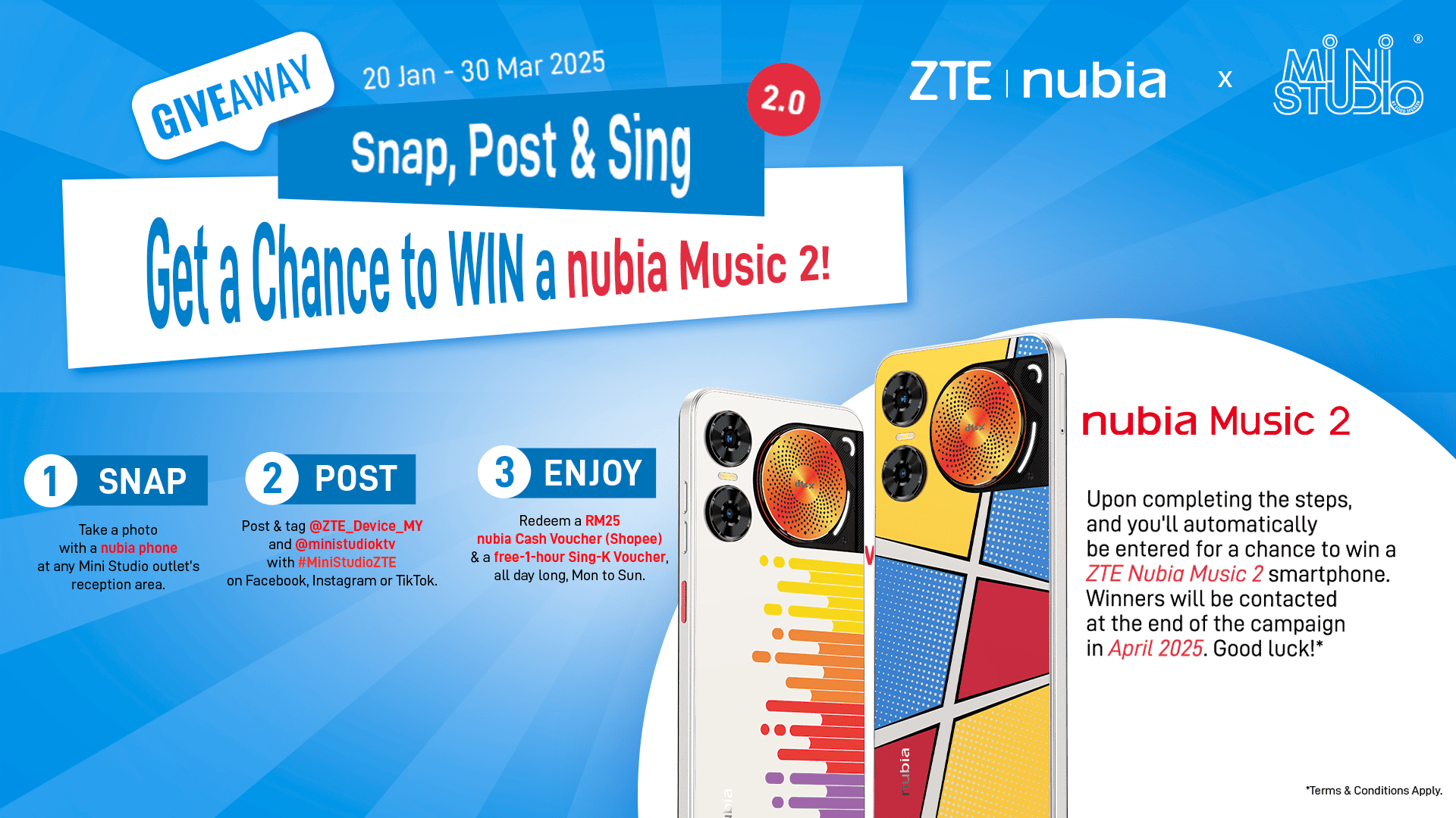 Redeem a RM25 Nubia Cash Voucher (Shopee) & a FREE 1-hour Sing-K voucher now at our Mini Studio Karaoke outlets.